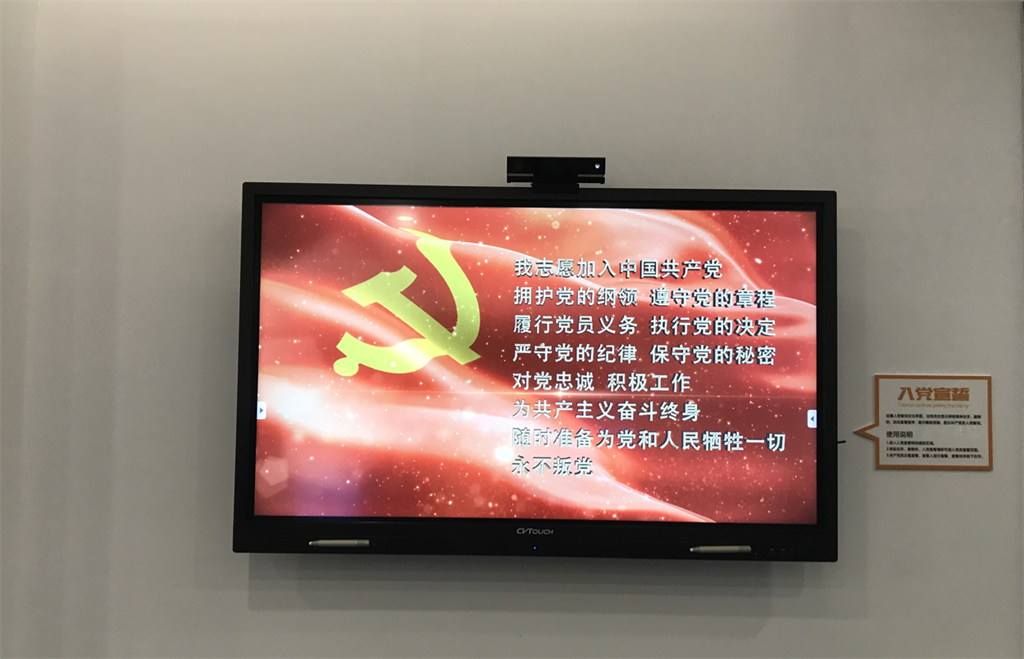“入黨宣誓墻”是通過(guò)體感攝像頭,來(lái)感應(yīng)人物在屏幕面前進(jìn)行入黨宣誓的軟件系統(tǒng)。宣誓人需進(jìn)入入黨宣誓特定感應(yīng)區(qū)域,在體感攝像頭識(shí)別人物后,宣誓人可舉起右手,握拳狀,宣誓墻即可進(jìn)入黨宣誓頁(yè)面;宣誓人莊重宣誓,宣誓人進(jìn)行宣誓。宣誓完畢放下右手,界面回原來(lái)頁(yè)面。