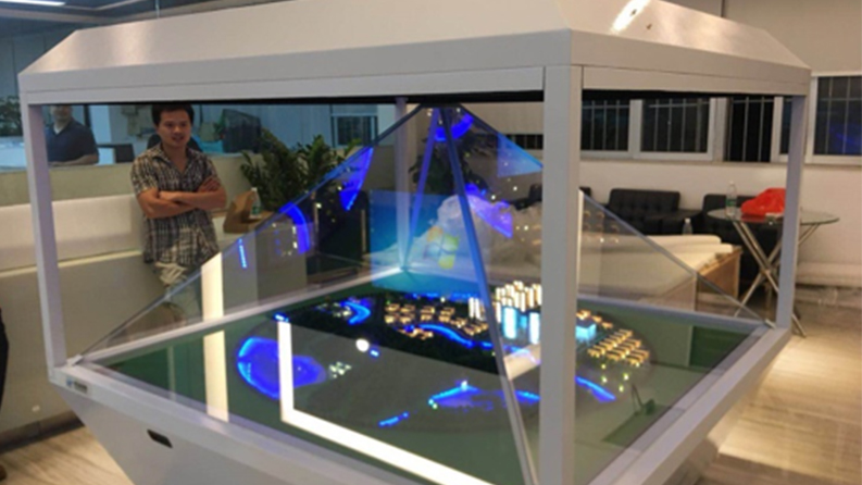 全息幻影成像系統(tǒng)是用一種將毒品三維畫面懸浮在柜體實景中的半空中成像系統(tǒng)。全息幻影成像通過幻影成像對毒品實拍構(gòu)建三維模型的特殊處理,然后將拍攝的毒品影像或產(chǎn)品三維模型影像疊加進場景中,構(gòu)成了 動靜結(jié)合的產(chǎn)品展示系統(tǒng)。不需要人們佩戴任何偏光眼鏡,在完全沒有 束縛下就可以盡情觀看3D幻影立體顯示特效給人以視覺上的沖擊,具有 強烈的縱深感。