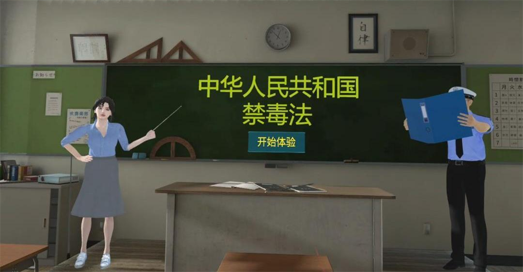 將現(xiàn)實中的普法教學場景通過三維建模技術(shù)高度還原,讓體驗者仿佛置身于真實的普法教室內(nèi)。場景中包含警官、老師、學生等元素,提供沉浸式的教學體驗。