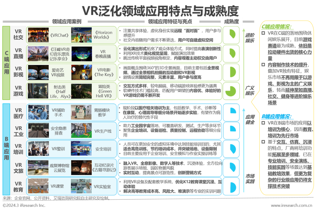 場景應(yīng)用:C端與B端同步發(fā)力,由基礎(chǔ)場景實(shí)踐如游戲、影視、文旅,向更為全面的進(jìn)階場景,如社交、工業(yè)、醫(yī)療延伸