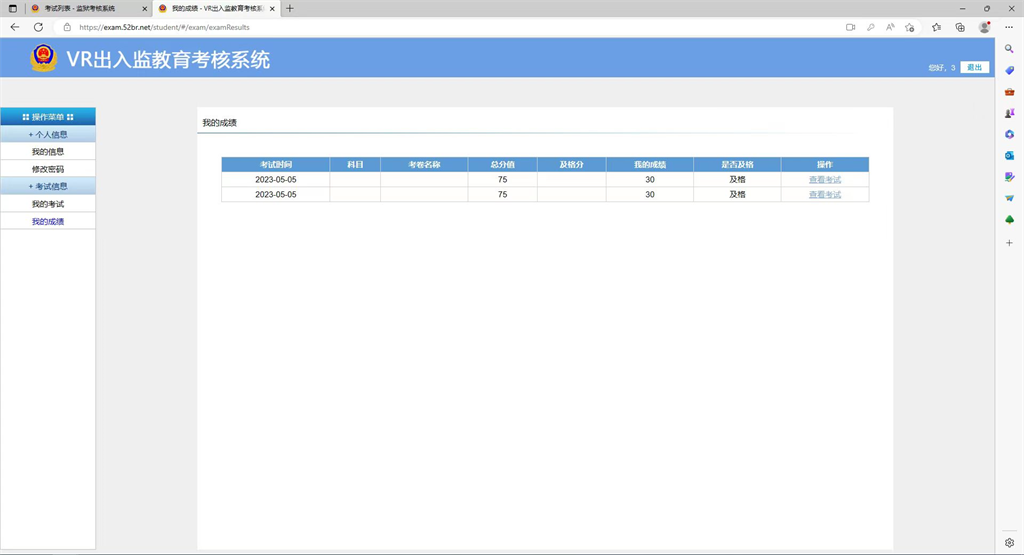 考試完成后可以查看考試成績。