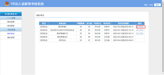 登錄后可以進行考試。