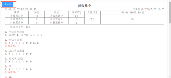 管理人員可以對考試結(jié)果進行打印。