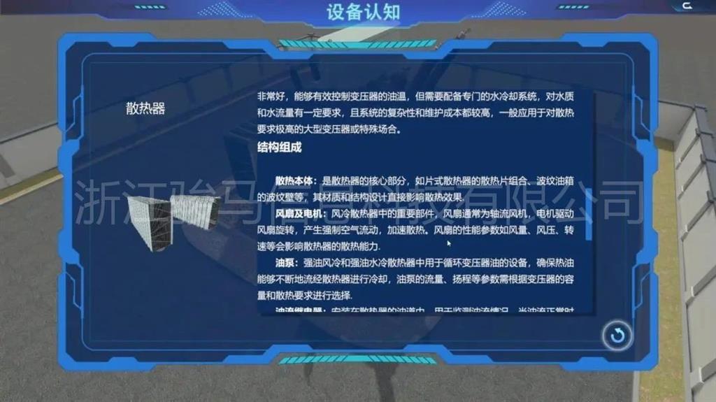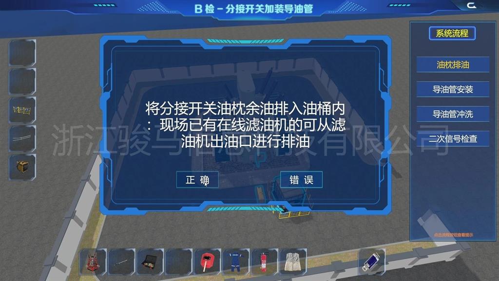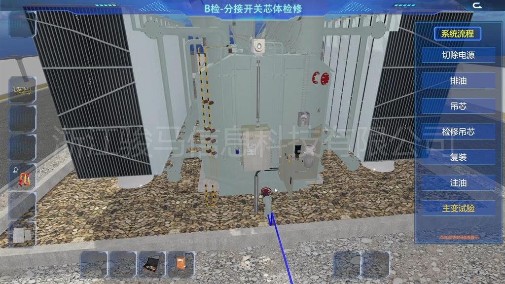 在軟件中,用戶可以體驗(yàn)到每個(gè)設(shè)備的維護(hù)工作,包括變壓器、分接開關(guān)、儲(chǔ)油柜、散熱器、套管、瓦斯繼電器、溫度計(jì)和在線濾油機(jī)等關(guān)鍵部件。通過(guò)模擬體驗(yàn),掌握變壓器維護(hù)操作。