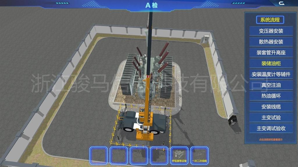 變電檢修虛擬仿真系統(tǒng)以3D形式對(duì)變電站系統(tǒng)結(jié)構(gòu)進(jìn)行仿真,模擬變壓器檢修,體驗(yàn)包括A檢(設(shè)備的整體解體檢查、維修等),B檢(局部性檢修)、設(shè)備認(rèn)知等內(nèi)容,提供360度、全方位的感官體驗(yàn)。