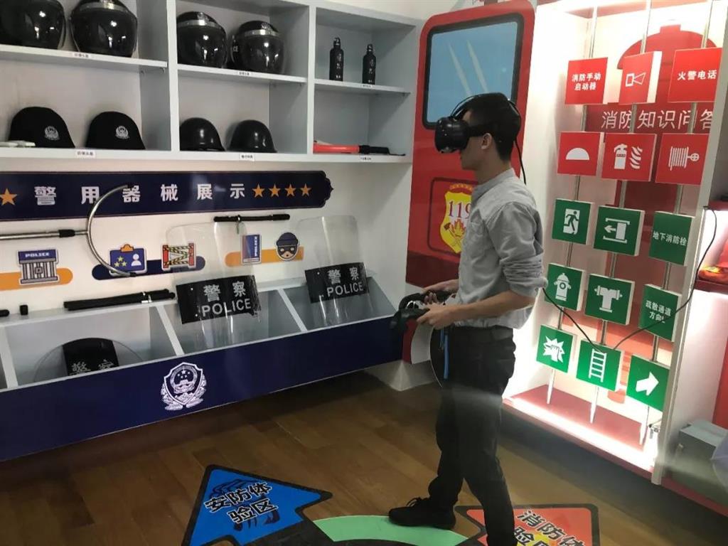 除了針對警務(wù)室內(nèi)部VR黨建學(xué)習(xí)外,還可以對外開放民眾體驗科普防詐騙、消防逃生、禁毒科普知識。