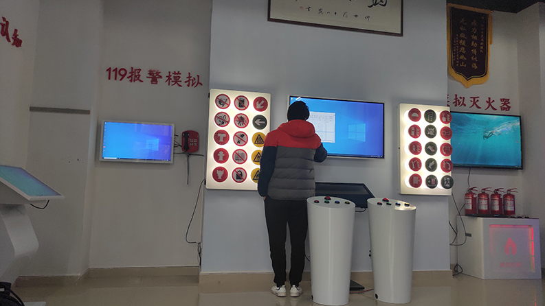 本系統(tǒng)由計(jì)算機(jī)軟件、專用主機(jī)、顯示屏、感應(yīng)設(shè)備共同組建,可以使體驗(yàn)者通過手持仿真的滅火器,對(duì)屏幕中的各類火災(zāi)場(chǎng)景進(jìn)行滅火體驗(yàn),通過對(duì)不同場(chǎng)景的識(shí)別選擇滅火器,真實(shí)互動(dòng)體驗(yàn)的同時(shí)又能學(xué)習(xí)到各種場(chǎng)景與滅火器的使用知識(shí)。軟件包含:7大場(chǎng)景、十四個(gè)細(xì)分場(chǎng)景,以及知識(shí)學(xué)習(xí)和考核測(cè)評(píng)功能。