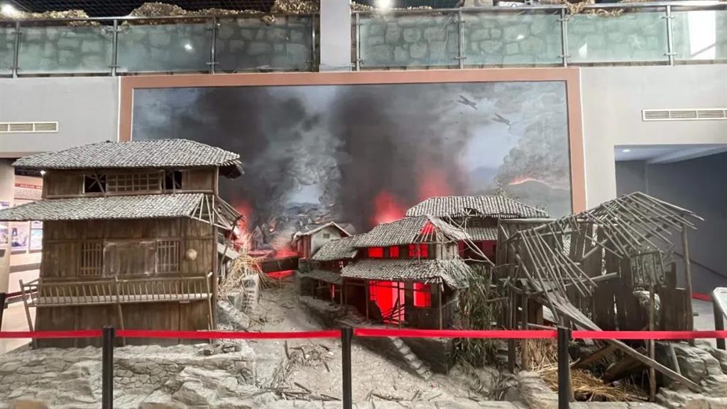 該區(qū)域為紀(jì)念館還原場景區(qū),其中轟炸場景是通過利用現(xiàn)代的聲光電技術(shù)制造出逼真效果,再配合氛圍燈光,模擬還原歷史中日軍飛機在頭頂上方的投彈、房屋被摧毀發(fā)出劇烈爆炸的場景;芙蓉戰(zhàn)斗是根據(jù)現(xiàn)場場景要求,安裝壁掛有源音響并配合芙蓉戰(zhàn)斗場景,還原展示抗戰(zhàn)歷史事跡;兩塊場景也使還原使紀(jì)念館展覽更加具有立體視覺感、藝術(shù)觀賞性、參與互動性和宣傳教育功能。